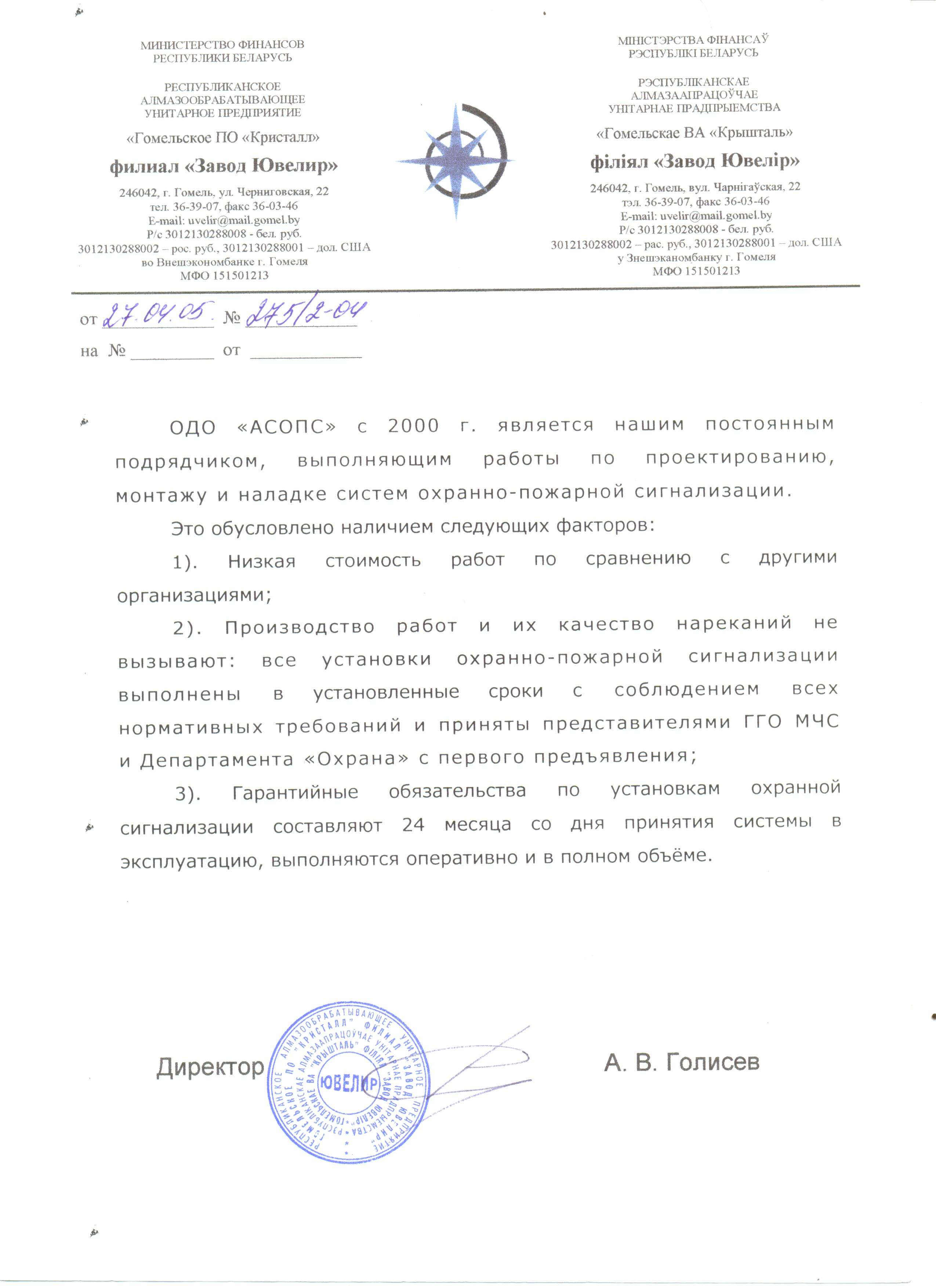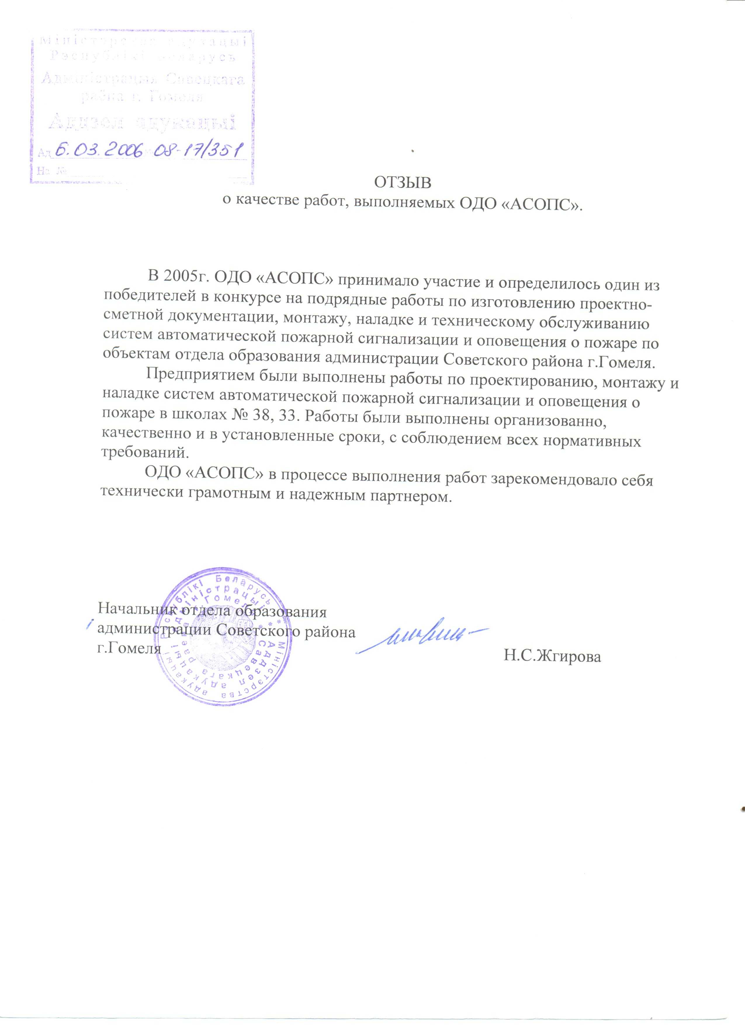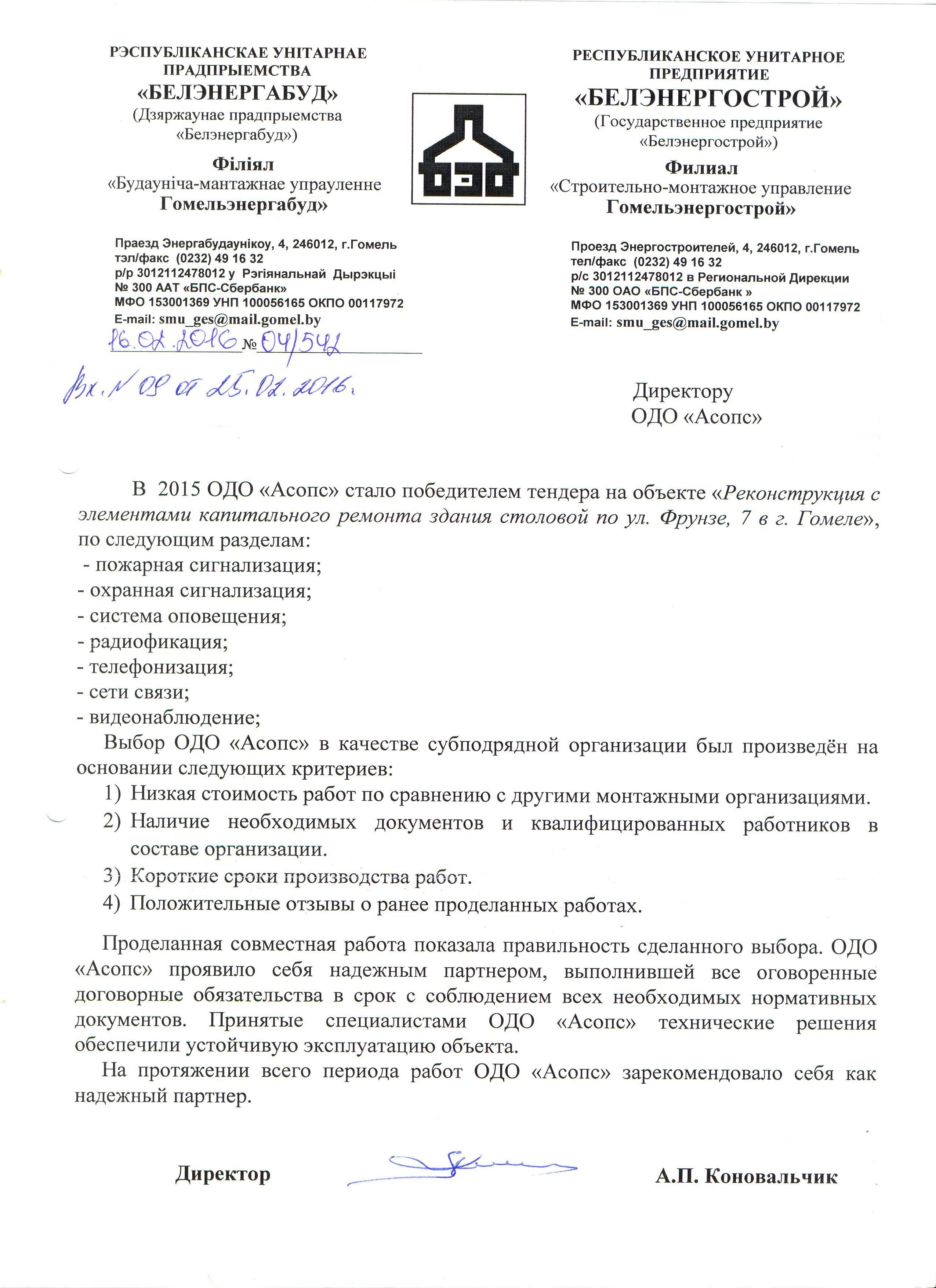 ОДО «АСОПС» работает в таких направлениях как: видеонаблюдение, системы пожарной и охранной сигнализации, СКУД и многое другое, как с государственными предприятиями, так и с частными организациями.