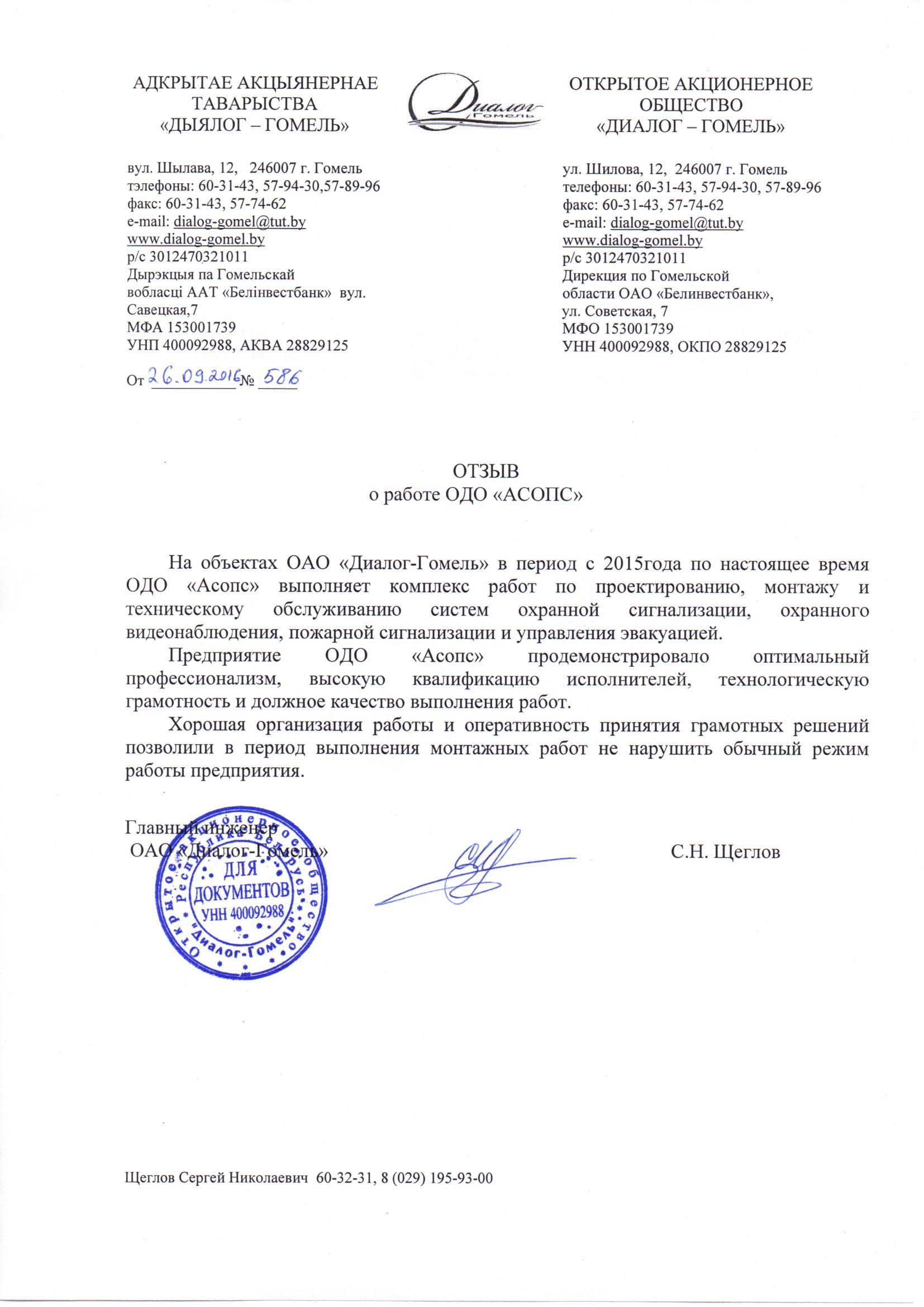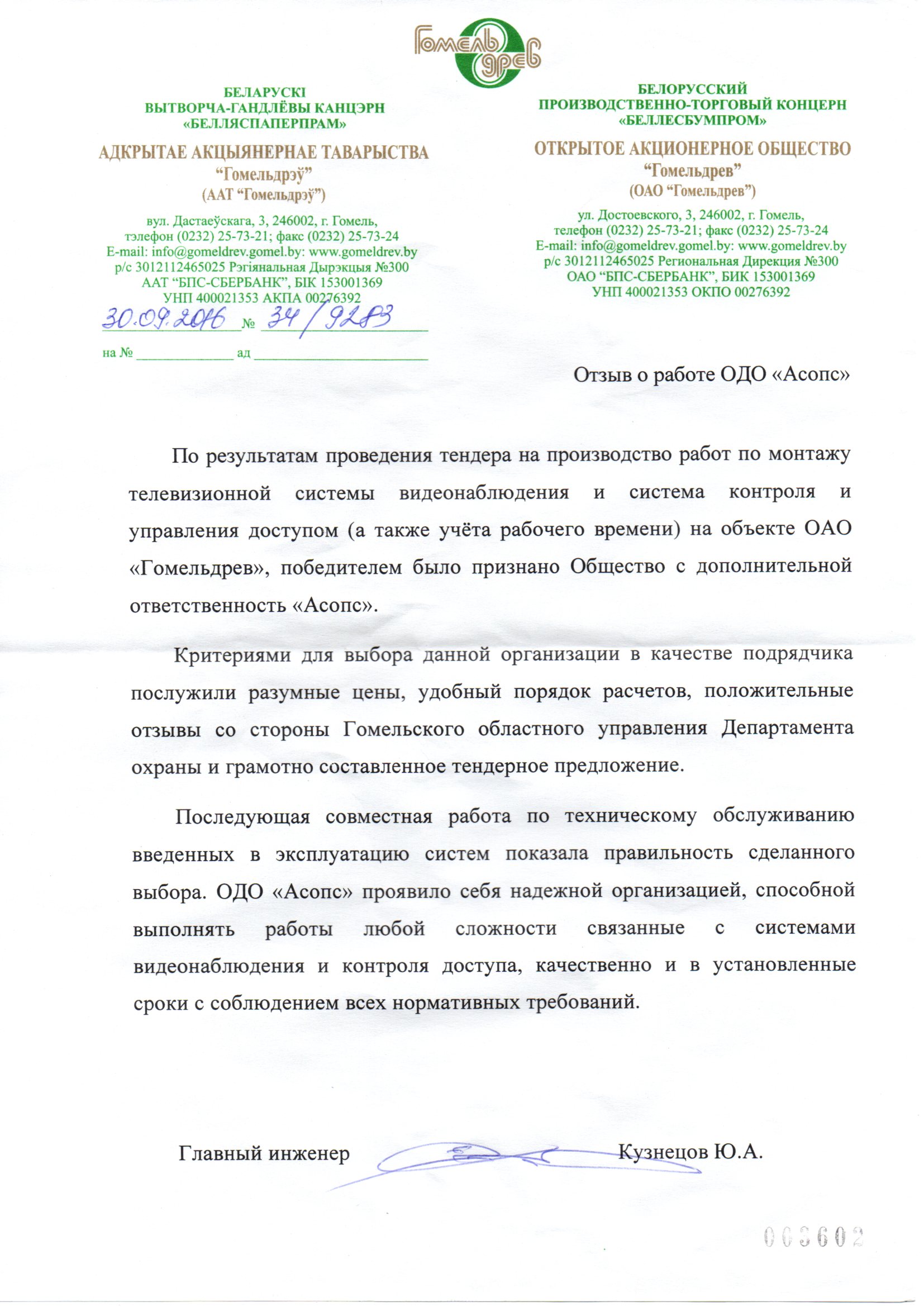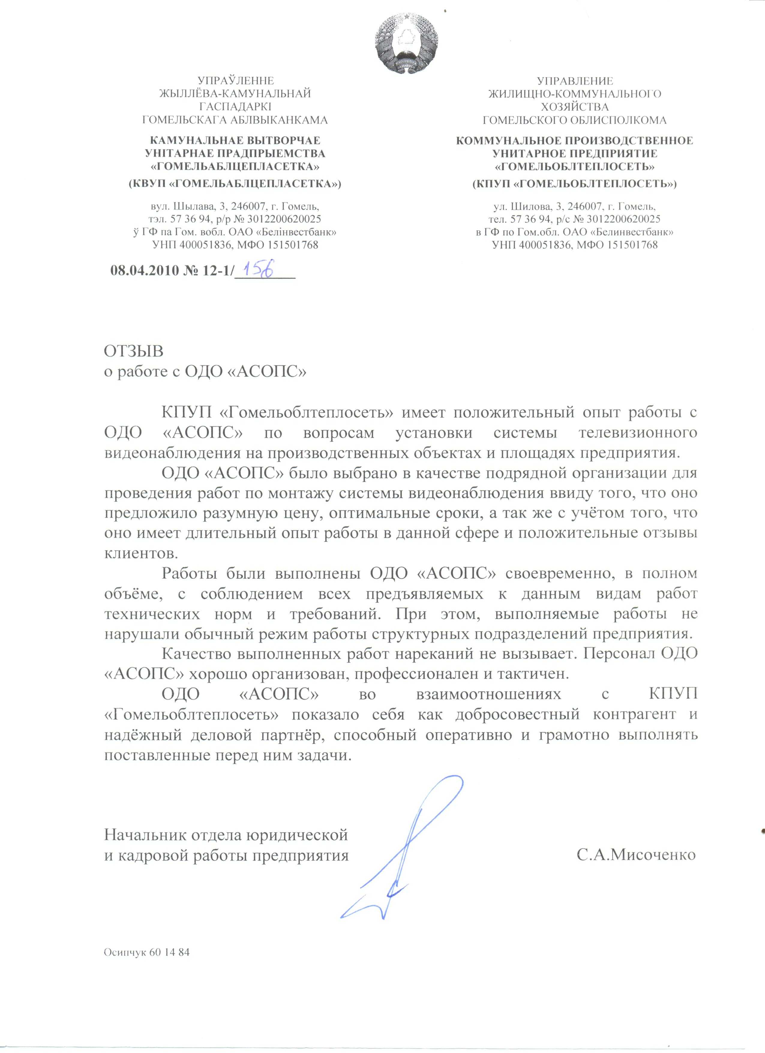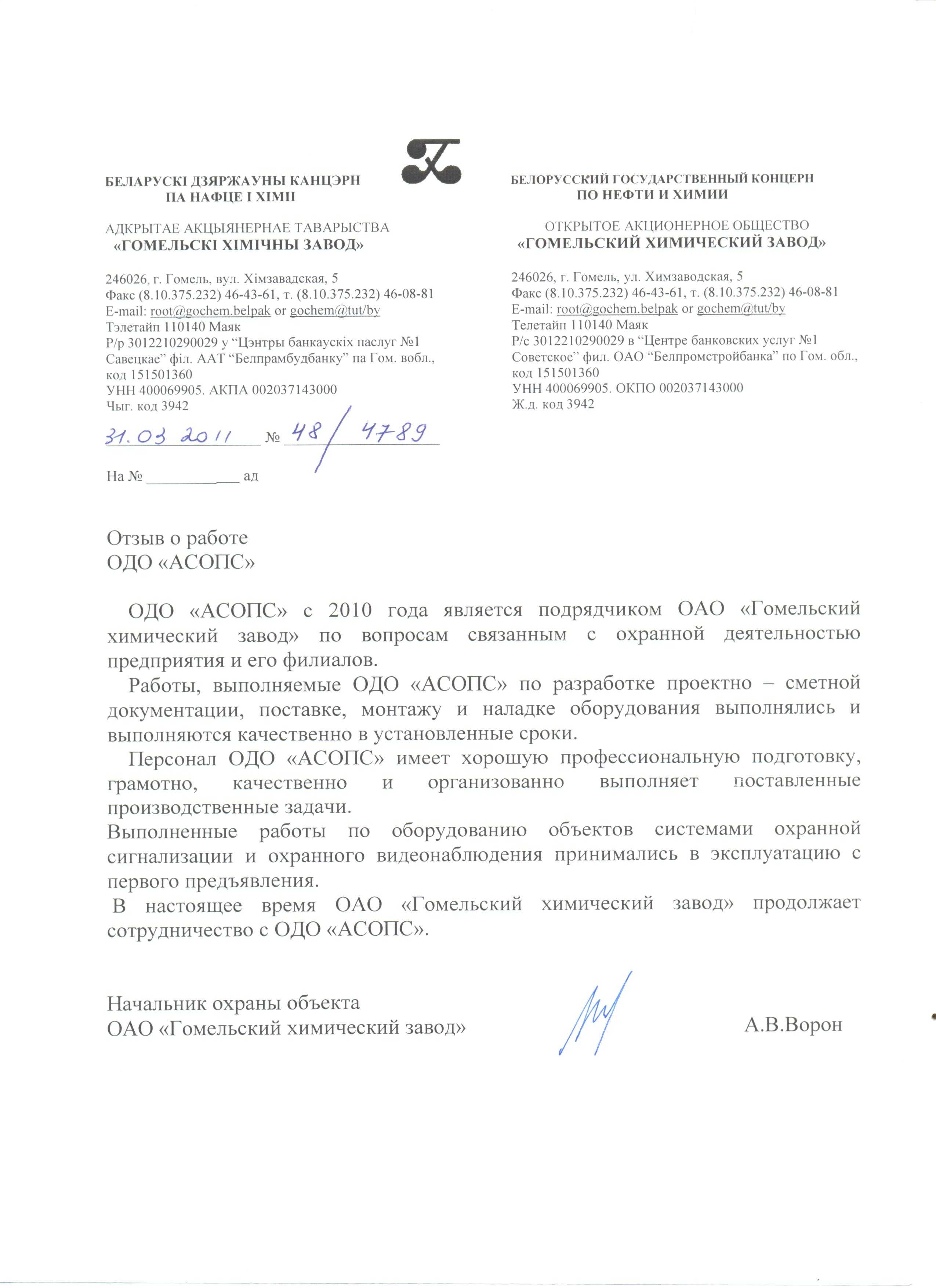 ОДО «АСОПС» работает в таких направлениях как: видеонаблюдение, системы пожарной и охранной сигнализации, СКУД и многое другое, как с государственными предприятиями, так и с частными организациями.