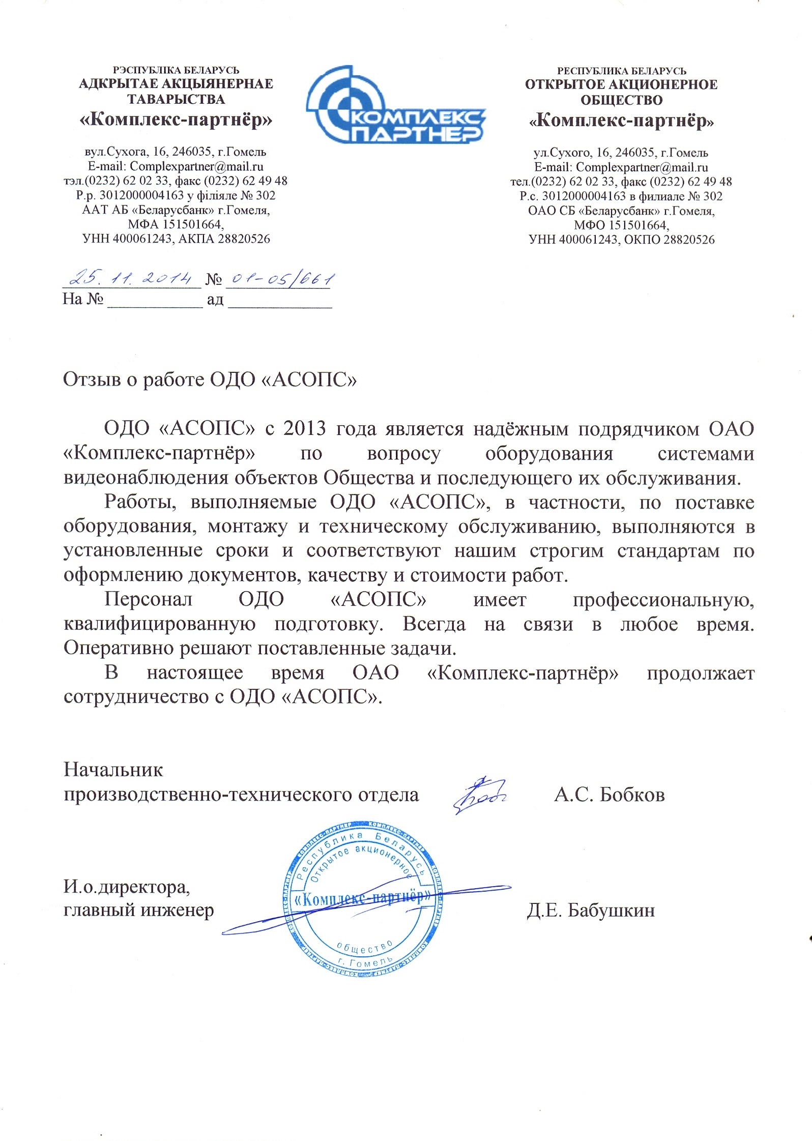 Клиенты компании ОДО "АСОПС"